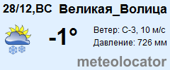Представляем прогноз погоды в Великой Волице на 3 дня (сегодня, завтра и послезавтра). Подробнее...Щелкните на соответствующем дне, чтобы получить подробный прогноз по нему. Для просмотра расширенных данных щелкните по заголовку соответствующего блока из группы блоков, расплолженных ниже основного прогноза. Для получения данных на другие дни используйте стрелки слева и справа от таблицы или навигационное меню в левой колонке страницы. Свернуть