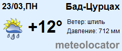 Представляем прогноз погоды в Бад-Цурцахе на 3 дня (сегодня, завтра и послезавтра). Подробнее...Щелкните на соответствующем дне, чтобы получить подробный прогноз по нему. Для просмотра расширенных данных щелкните по заголовку соответствующего блока из группы блоков, расплолженных ниже основного прогноза. Для получения данных на другие дни используйте стрелки слева и справа от таблицы или навигационное меню в левой колонке страницы. Свернуть