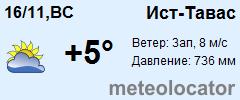 Представляем прогноз погоды в Ист-Тавасе на 3 дня (сегодня, завтра и послезавтра). Подробнее...Щелкните на соответствующем дне, чтобы получить подробный прогноз по нему. Для просмотра расширенных данных щелкните по заголовку соответствующего блока из группы блоков, расплолженных ниже основного прогноза. Для получения данных на другие дни используйте стрелки слева и справа от таблицы или навигационное меню в левой колонке страницы. Свернуть