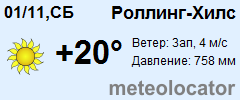 Представляем прогноз погоды в Роллинг-Хилс на 3 дня (сегодня, завтра и послезавтра). Подробнее...Щелкните на соответствующем дне, чтобы получить подробный прогноз по нему. Для просмотра расширенных данных щелкните по заголовку соответствующего блока из группы блоков, расплолженных ниже основного прогноза. Для получения данных на другие дни используйте стрелки слева и справа от таблицы или навигационное меню в левой колонке страницы. Свернуть