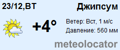 Представляем прогноз погоды в Джипсуме на 3 дня (сегодня, завтра и послезавтра). Подробнее...Щелкните на соответствующем дне, чтобы получить подробный прогноз по нему. Для просмотра расширенных данных щелкните по заголовку соответствующего блока из группы блоков, расплолженных ниже основного прогноза. Для получения данных на другие дни используйте стрелки слева и справа от таблицы или навигационное меню в левой колонке страницы. Свернуть