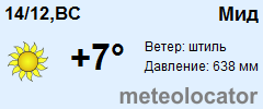 Представляем прогноз погоды в Миде на 3 дня (сегодня, завтра и послезавтра). Подробнее...Щелкните на соответствующем дне, чтобы получить подробный прогноз по нему. Для просмотра расширенных данных щелкните по заголовку соответствующего блока из группы блоков, расплолженных ниже основного прогноза. Для получения данных на другие дни используйте стрелки слева и справа от таблицы или навигационное меню в левой колонке страницы. Свернуть