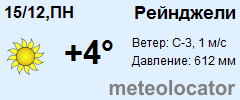 Представляем прогноз погоды в Рейнджели на 3 дня (сегодня, завтра и послезавтра). Подробнее...Щелкните на соответствующем дне, чтобы получить подробный прогноз по нему. Для просмотра расширенных данных щелкните по заголовку соответствующего блока из группы блоков, расплолженных ниже основного прогноза. Для получения данных на другие дни используйте стрелки слева и справа от таблицы или навигационное меню в левой колонке страницы. Свернуть