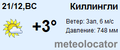 Представляем прогноз погоды в Киллингли на 3 дня (сегодня, завтра и послезавтра). Подробнее...Щелкните на соответствующем дне, чтобы получить подробный прогноз по нему. Для просмотра расширенных данных щелкните по заголовку соответствующего блока из группы блоков, расплолженных ниже основного прогноза. Для получения данных на другие дни используйте стрелки слева и справа от таблицы или навигационное меню в левой колонке страницы. Свернуть