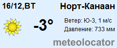 Представляем прогноз погоды в Норт-Канаане на 3 дня (сегодня, завтра и послезавтра). Подробнее...Щелкните на соответствующем дне, чтобы получить подробный прогноз по нему. Для просмотра расширенных данных щелкните по заголовку соответствующего блока из группы блоков, расплолженных ниже основного прогноза. Для получения данных на другие дни используйте стрелки слева и справа от таблицы или навигационное меню в левой колонке страницы. Свернуть