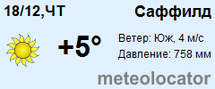 Представляем прогноз погоды в Саффилде на 3 дня (сегодня, завтра и послезавтра). Подробнее...Щелкните на соответствующем дне, чтобы получить подробный прогноз по нему. Для просмотра расширенных данных щелкните по заголовку соответствующего блока из группы блоков, расплолженных ниже основного прогноза. Для получения данных на другие дни используйте стрелки слева и справа от таблицы или навигационное меню в левой колонке страницы. Свернуть