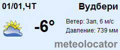 Представляем прогноз погоды в Вудбери на 3 дня (сегодня, завтра и послезавтра). Подробнее...Щелкните на соответствующем дне, чтобы получить подробный прогноз по нему. Для просмотра расширенных данных щелкните по заголовку соответствующего блока из группы блоков, расплолженных ниже основного прогноза. Для получения данных на другие дни используйте стрелки слева и справа от таблицы или навигационное меню в левой колонке страницы. Свернуть