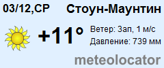 Представляем прогноз погоды в Стоун-Маунтине на 3 дня (сегодня, завтра и послезавтра). Подробнее...Щелкните на соответствующем дне, чтобы получить подробный прогноз по нему. Для просмотра расширенных данных щелкните по заголовку соответствующего блока из группы блоков, расплолженных ниже основного прогноза. Для получения данных на другие дни используйте стрелки слева и справа от таблицы или навигационное меню в левой колонке страницы. Свернуть