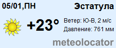 Представляем прогноз погоды в Эстатуле на 3 дня (сегодня, завтра и послезавтра). Подробнее...Щелкните на соответствующем дне, чтобы получить подробный прогноз по нему. Для просмотра расширенных данных щелкните по заголовку соответствующего блока из группы блоков, расплолженных ниже основного прогноза. Для получения данных на другие дни используйте стрелки слева и справа от таблицы или навигационное меню в левой колонке страницы. Свернуть