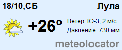 Представляем прогноз погоды в Луле на 3 дня (сегодня, завтра и послезавтра). Подробнее...Щелкните на соответствующем дне, чтобы получить подробный прогноз по нему. Для просмотра расширенных данных щелкните по заголовку соответствующего блока из группы блоков, расплолженных ниже основного прогноза. Для получения данных на другие дни используйте стрелки слева и справа от таблицы или навигационное меню в левой колонке страницы. Свернуть