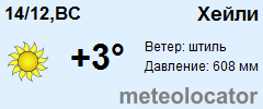 Представляем прогноз погоды в Хейли на 3 дня (сегодня, завтра и послезавтра). Подробнее...Щелкните на соответствующем дне, чтобы получить подробный прогноз по нему. Для просмотра расширенных данных щелкните по заголовку соответствующего блока из группы блоков, расплолженных ниже основного прогноза. Для получения данных на другие дни используйте стрелки слева и справа от таблицы или навигационное меню в левой колонке страницы. Свернуть