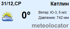 Представляем прогноз погоды в Катлине на 3 дня (сегодня, завтра и послезавтра). Подробнее...Щелкните на соответствующем дне, чтобы получить подробный прогноз по нему. Для просмотра расширенных данных щелкните по заголовку соответствующего блока из группы блоков, расплолженных ниже основного прогноза. Для получения данных на другие дни используйте стрелки слева и справа от таблицы или навигационное меню в левой колонке страницы. Свернуть