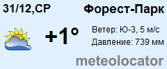 Представляем прогноз погоды в Форест-Парке на 3 дня (сегодня, завтра и послезавтра). Подробнее...Щелкните на соответствующем дне, чтобы получить подробный прогноз по нему. Для просмотра расширенных данных щелкните по заголовку соответствующего блока из группы блоков, расплолженных ниже основного прогноза. Для получения данных на другие дни используйте стрелки слева и справа от таблицы или навигационное меню в левой колонке страницы. Свернуть
