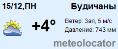 Представляем прогноз погоды в Будичанах на 3 дня (сегодня, завтра и послезавтра). Подробнее...Щелкните на соответствующем дне, чтобы получить подробный прогноз по нему. Для просмотра расширенных данных щелкните по заголовку соответствующего блока из группы блоков, расплолженных ниже основного прогноза. Для получения данных на другие дни используйте стрелки слева и справа от таблицы или навигационное меню в левой колонке страницы. Свернуть
