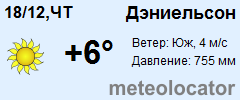 Представляем прогноз погоды в Дэниельсоне на 3 дня (сегодня, завтра и послезавтра). Подробнее...Щелкните на соответствующем дне, чтобы получить подробный прогноз по нему. Для просмотра расширенных данных щелкните по заголовку соответствующего блока из группы блоков, расплолженных ниже основного прогноза. Для получения данных на другие дни используйте стрелки слева и справа от таблицы или навигационное меню в левой колонке страницы. Свернуть