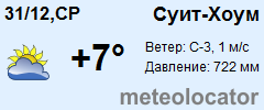 Представляем прогноз погоды в Суит-Хоум на 3 дня (сегодня, завтра и послезавтра). Подробнее...Щелкните на соответствующем дне, чтобы получить подробный прогноз по нему. Для просмотра расширенных данных щелкните по заголовку соответствующего блока из группы блоков, расплолженных ниже основного прогноза. Для получения данных на другие дни используйте стрелки слева и справа от таблицы или навигационное меню в левой колонке страницы. Свернуть