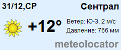 Представляем прогноз погоды в Сентрале на 5 - 7 дней. Подробнее...Щелкните на соответствующем дне, чтобы получить подробный прогноз по нему. Для просмотра расширенных данных щелкните по заголовку соответствующего блока из группы блоков, расплолженных ниже основного. Для получения данных на другие дни используйте стрелки слева и справа от таблицы с погодой или навигационное меню в левой колонке страницы. Свернуть