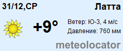Представляем прогноз погоды в Латте на 5 - 7 дней. Подробнее...Щелкните на соответствующем дне, чтобы получить подробный прогноз по нему. Для просмотра расширенных данных щелкните по заголовку соответствующего блока из группы блоков, расплолженных ниже основного. Для получения данных на другие дни используйте стрелки слева и справа от таблицы с погодой или навигационное меню в левой колонке страницы. Свернуть