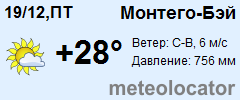 Представляем прогноз погоды в Монтего-Бэй на 3 дня (сегодня, завтра и послезавтра). Подробнее...Щелкните на соответствующем дне, чтобы получить подробный прогноз по нему. Для просмотра расширенных данных щелкните по заголовку соответствующего блока из группы блоков, расплолженных ниже основного прогноза. Для получения данных на другие дни используйте стрелки слева и справа от таблицы или навигационное меню в левой колонке страницы. Свернуть