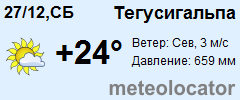 Представляем прогноз погоды в Тегусигальпе на 3 дня (сегодня, завтра и послезавтра). Подробнее...Щелкните на соответствующем дне, чтобы получить подробный прогноз по нему. Для просмотра расширенных данных щелкните по заголовку соответствующего блока из группы блоков, расплолженных ниже основного прогноза. Для получения данных на другие дни используйте стрелки слева и справа от таблицы или навигационное меню в левой колонке страницы. Свернуть
