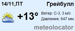 Представляем прогноз погоды в Грейбулле на 3 дня (сегодня, завтра и послезавтра). Подробнее...Щелкните на соответствующем дне, чтобы получить подробный прогноз по нему. Для просмотра расширенных данных щелкните по заголовку соответствующего блока из группы блоков, расплолженных ниже основного прогноза. Для получения данных на другие дни используйте стрелки слева и справа от таблицы или навигационное меню в левой колонке страницы. Свернуть