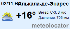 Представляем прогноз погоды в Алькала-де-Энаресе на 3 дня (сегодня, завтра и послезавтра). Подробнее...Щелкните на соответствующем дне, чтобы получить подробный прогноз по нему. Для просмотра расширенных данных щелкните по заголовку соответствующего блока из группы блоков, расплолженных ниже основного прогноза. Для получения данных на другие дни используйте стрелки слева и справа от таблицы или навигационное меню в левой колонке страницы. Свернуть