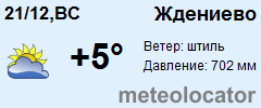 Представляем прогноз погоды в Ждениево на 3 дня (сегодня, завтра и послезавтра). Подробнее...Щелкните на соответствующем дне, чтобы получить подробный прогноз по нему. Для просмотра расширенных данных щелкните по заголовку соответствующего блока из группы блоков, расплолженных ниже основного прогноза. Для получения данных на другие дни используйте стрелки слева и справа от таблицы или навигационное меню в левой колонке страницы. Свернуть