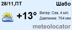 Представляем прогноз погоды в Шабо на 3 дня (сегодня, завтра и послезавтра). Подробнее...Щелкните на соответствующем дне, чтобы получить подробный прогноз по нему. Для просмотра расширенных данных щелкните по заголовку соответствующего блока из группы блоков, расплолженных ниже основного прогноза. Для получения данных на другие дни используйте стрелки слева и справа от таблицы или навигационное меню в левой колонке страницы. Свернуть