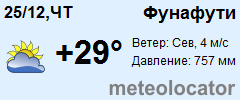Представляем прогноз погоды в Фунафути на 3 дня (сегодня, завтра и послезавтра). Подробнее...Щелкните на соответствующем дне, чтобы получить подробный прогноз по нему. Для просмотра расширенных данных щелкните по заголовку соответствующего блока из группы блоков, расплолженных ниже основного прогноза. Для получения данных на другие дни используйте стрелки слева и справа от таблицы или навигационное меню в левой колонке страницы. Свернуть