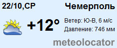 Представляем прогноз погоды в Чемерполе на 3 дня (сегодня, завтра и послезавтра). Подробнее...Щелкните на соответствующем дне, чтобы получить подробный прогноз по нему. Для просмотра расширенных данных щелкните по заголовку соответствующего блока из группы блоков, расплолженных ниже основного прогноза. Для получения данных на другие дни используйте стрелки слева и справа от таблицы или навигационное меню в левой колонке страницы. Свернуть