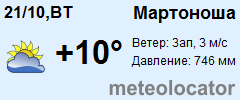 Представляем прогноз погоды в Мартоноше на 3 дня (сегодня, завтра и послезавтра). Подробнее...Щелкните на соответствующем дне, чтобы получить подробный прогноз по нему. Для просмотра расширенных данных щелкните по заголовку соответствующего блока из группы блоков, расплолженных ниже основного прогноза. Для получения данных на другие дни используйте стрелки слева и справа от таблицы или навигационное меню в левой колонке страницы. Свернуть
