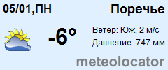 Представляем прогноз погоды в Поречье на 3 дня (сегодня, завтра и послезавтра). Подробнее...Щелкните на соответствующем дне, чтобы получить подробный прогноз по нему. Для просмотра расширенных данных щелкните по заголовку соответствующего блока из группы блоков, расплолженных ниже основного прогноза. Для получения данных на другие дни используйте стрелки слева и справа от таблицы или навигационное меню в левой колонке страницы. Свернуть