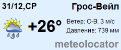 Представляем прогноз погоды в Грос-Вейле на 3 дня (сегодня, завтра и послезавтра). Подробнее...Щелкните на соответствующем дне, чтобы получить подробный прогноз по нему. Для просмотра расширенных данных щелкните по заголовку соответствующего блока из группы блоков, расплолженных ниже основного прогноза. Для получения данных на другие дни используйте стрелки слева и справа от таблицы или навигационное меню в левой колонке страницы. Свернуть