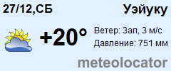 Представляем прогноз погоды в Уэйуку на 3 дня (сегодня, завтра и послезавтра). Подробнее...Щелкните на соответствующем дне, чтобы получить подробный прогноз по нему. Для просмотра расширенных данных щелкните по заголовку соответствующего блока из группы блоков, расплолженных ниже основного прогноза. Для получения данных на другие дни используйте стрелки слева и справа от таблицы или навигационное меню в левой колонке страницы. Свернуть